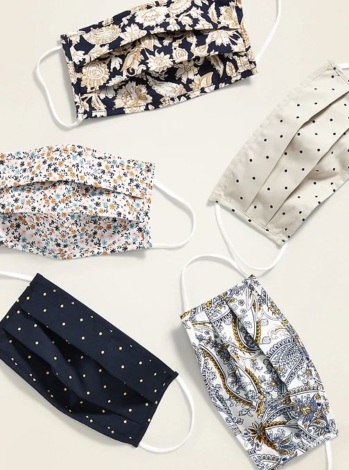 Navy Ditsy Variety 5-Pack of Triple-Layer Cloth Face Masks for Adults