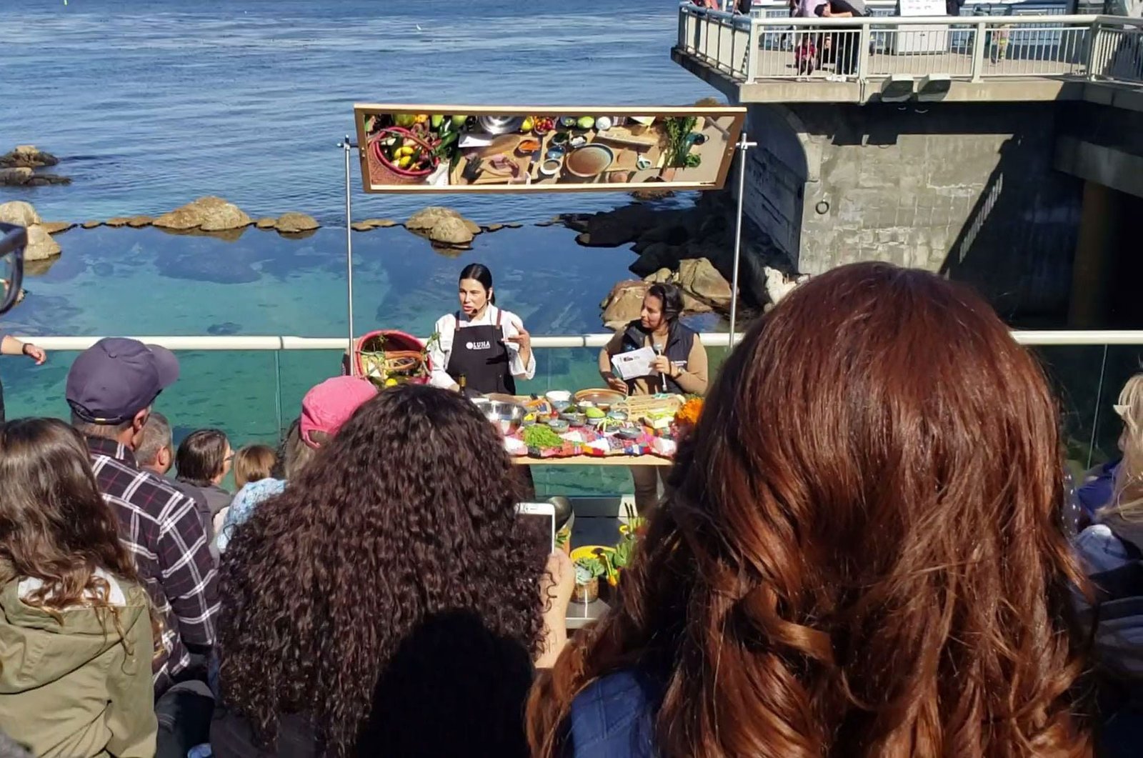 Here she is, alongside Chef Julio Juarez, demonstrating how to prepare their favorite sustainable seafood recipe at the Monterey Bay Aquarium’s Fiesta del Mar event.