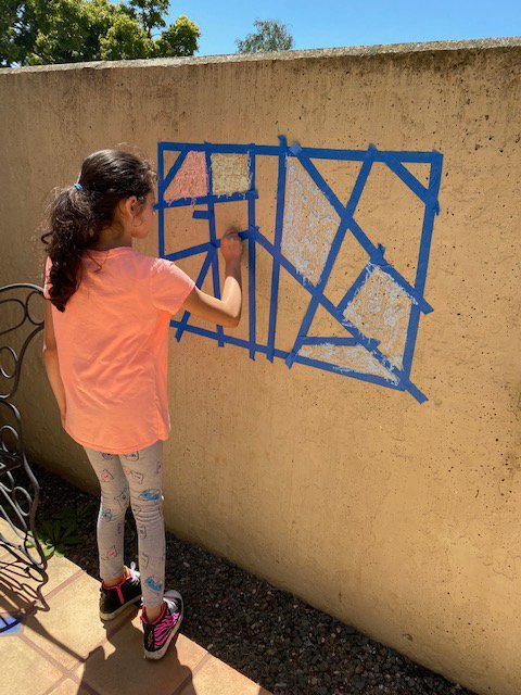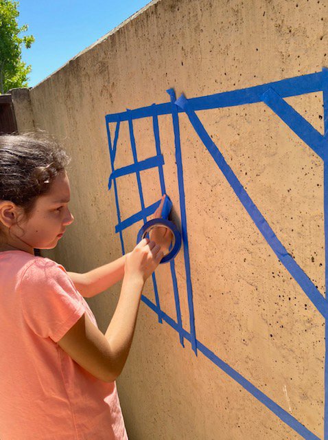 - Place the tape in the desired shape for the mosaic. We opted to go with a simple rectangle shape filled with various forms inside.