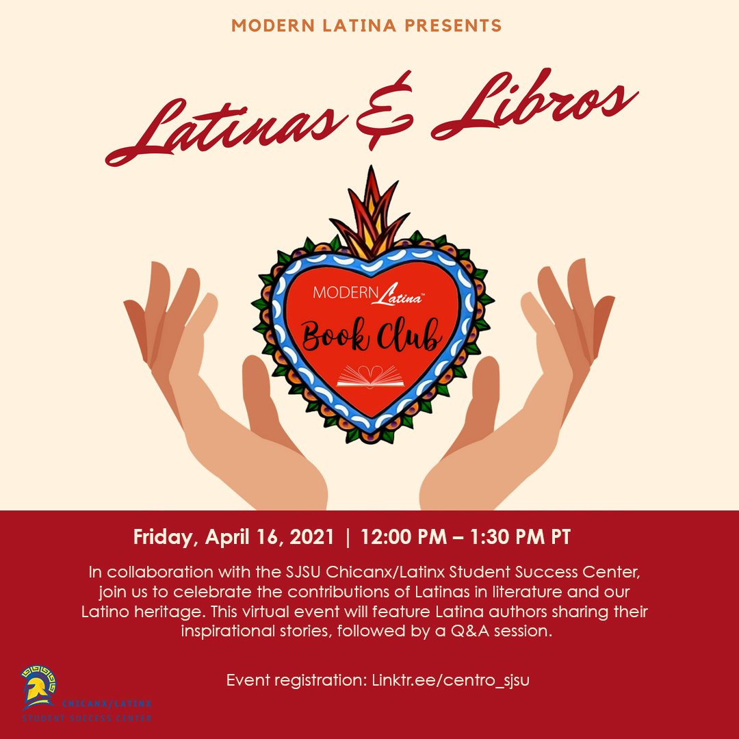 In collaboration with the SJSU Chicanx/Latinx Student Success Center, join us to celebrate the contributions of Latinas in literature and our Latino heritage. This virtual event will feature Latina authors sharing their inspirational stories, followed by a Q&A session.