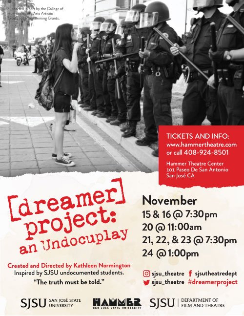 SJSU Department of Film and Theatre’s upcoming play: [Dreamer] Project: An Undocuplay opened November 15, 2019 at the Hammer Theatre Center and runs through November 23.